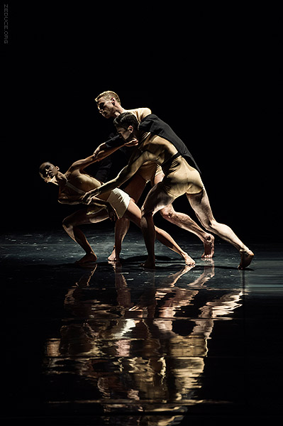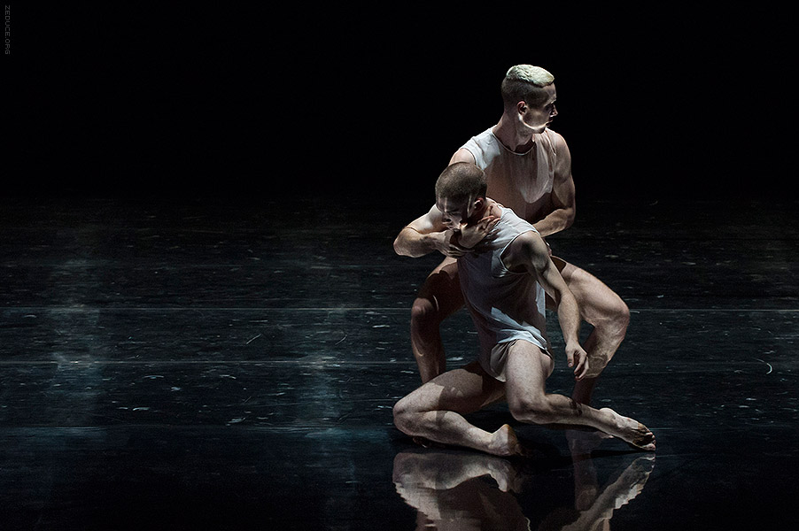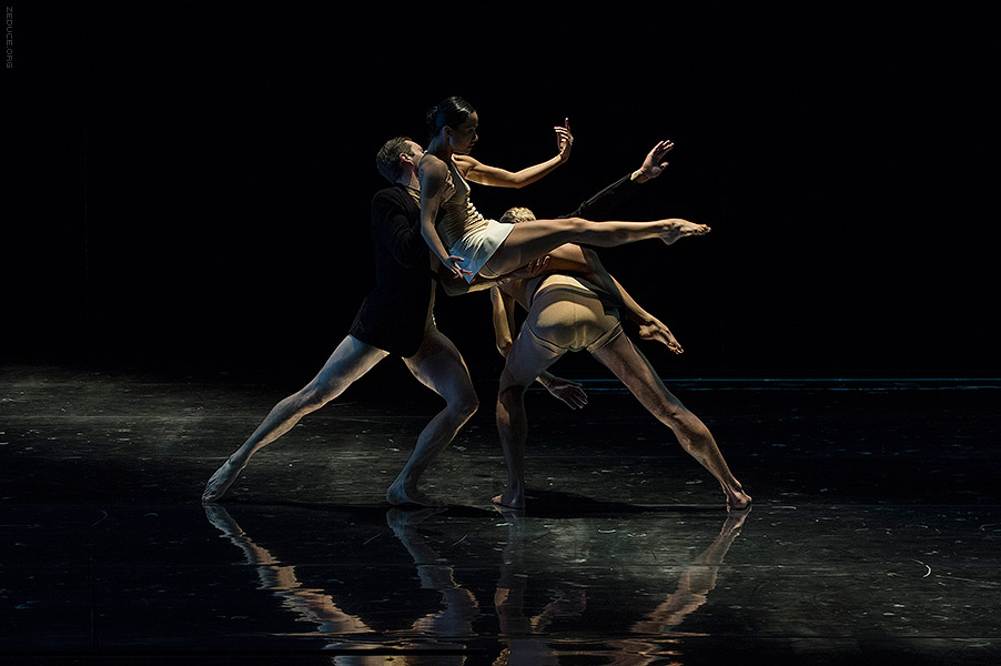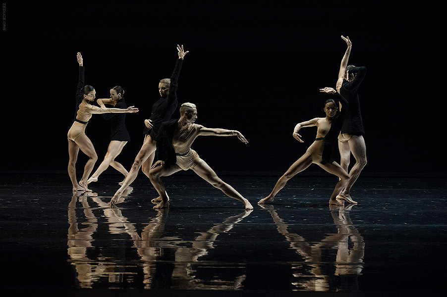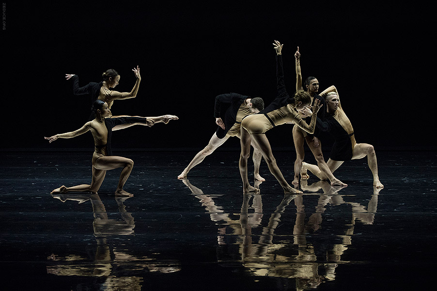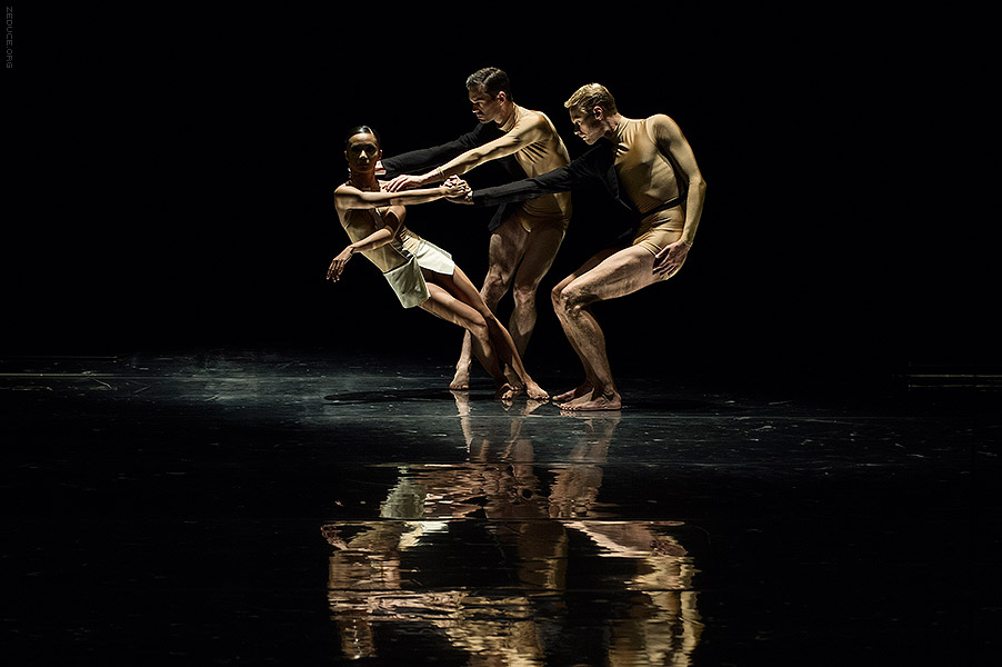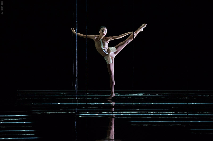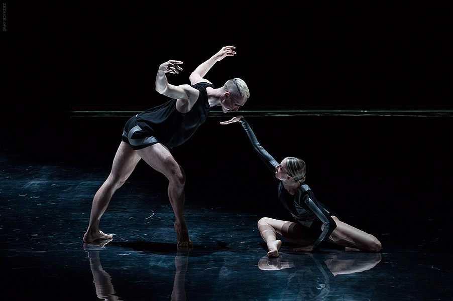 Dion Lee bolsters the visual feast through interactive costume artistry. Lee’s creations mimic the ultra complex movements expressed by Bonachela’s choreography. This collaboration between clothing designer and choreographer is sensible seeing that the encompassing Dion Lee aesthetic is focused on cut. Ingenuity ensues with every pivot as the right profile reveals a starched lapel and the left profile a metallic leotard.