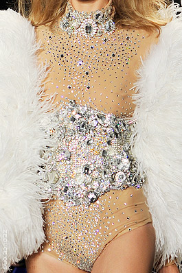 look is a nude silk Strass corset embellished with large, opulent cuts