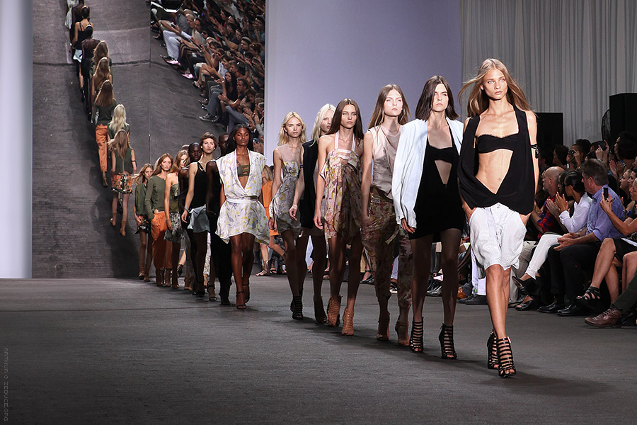 Edun spared no mercy as they hit you with earthy browns, greens, and blacks worked into sexy lingerie inspired looks, not to mention Marilyn-esque plunging neck lines in white silk. The tops formed enticing sleek lines, revealing a wide-open chest inviting the eyes to explore further.