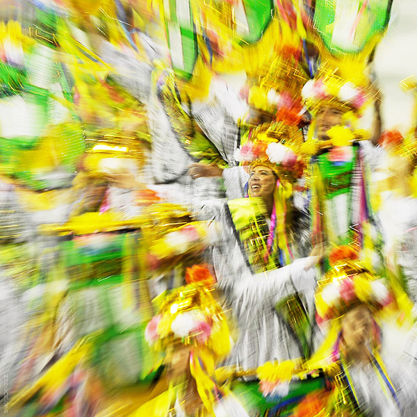 of Carnaval. Scantily clad, vivacious females of 12 distinct Samba schools gyrate atop ornate floats in an exquisite procession.