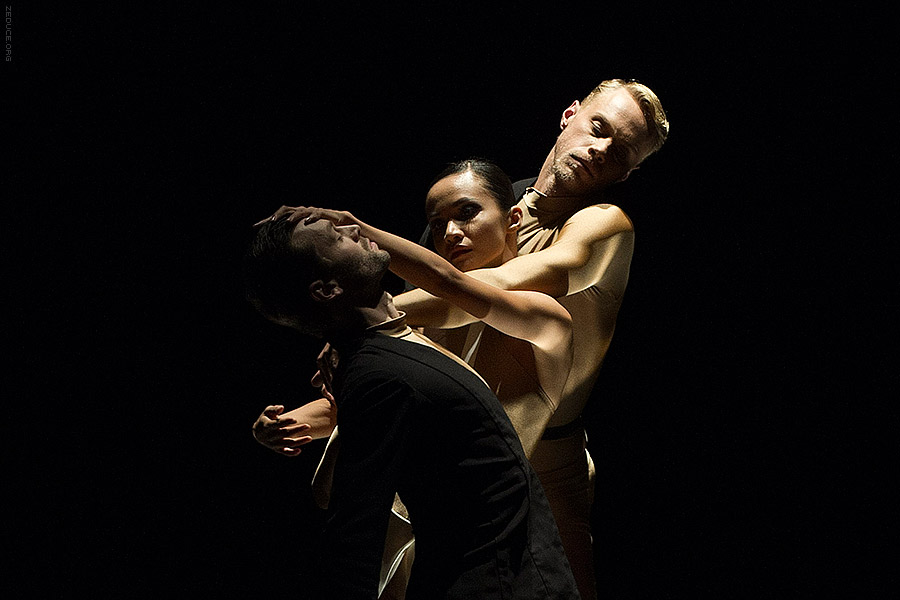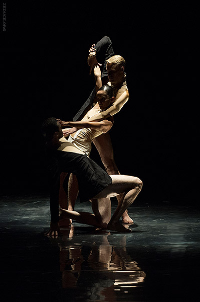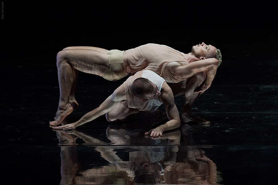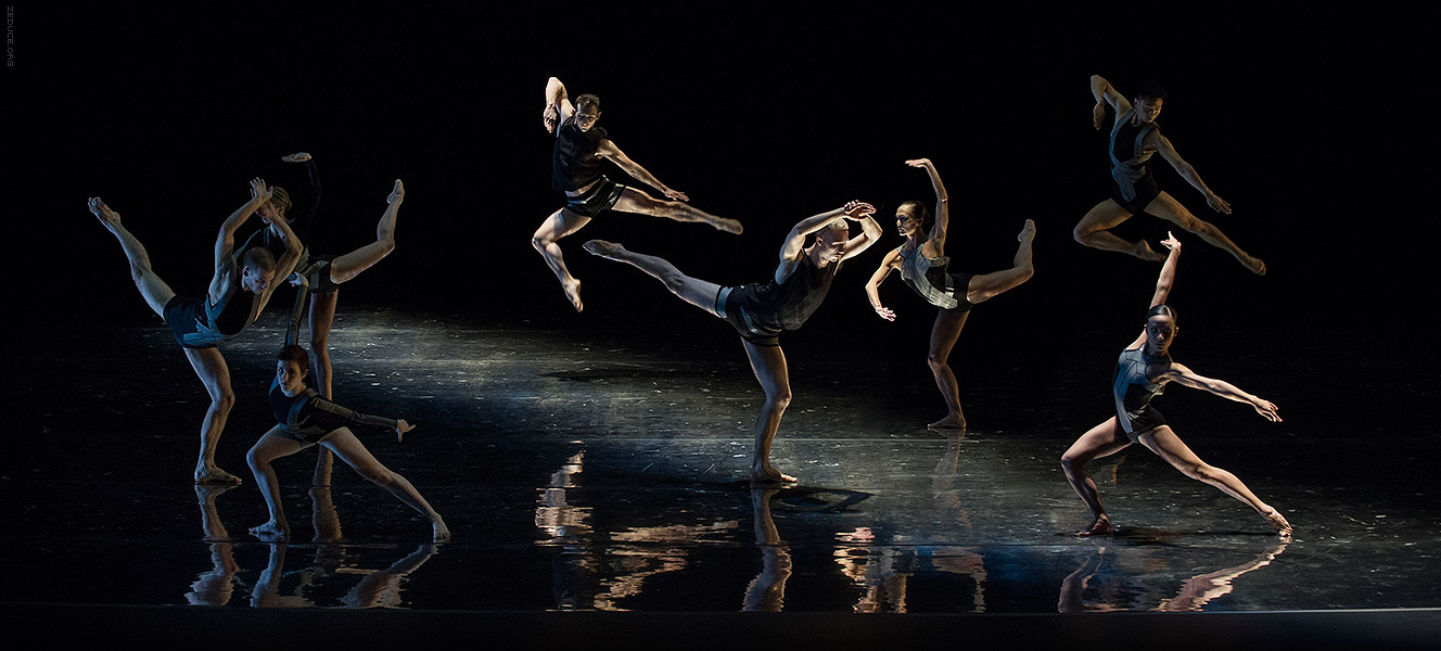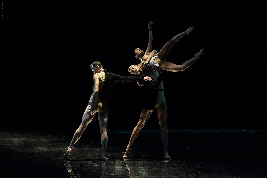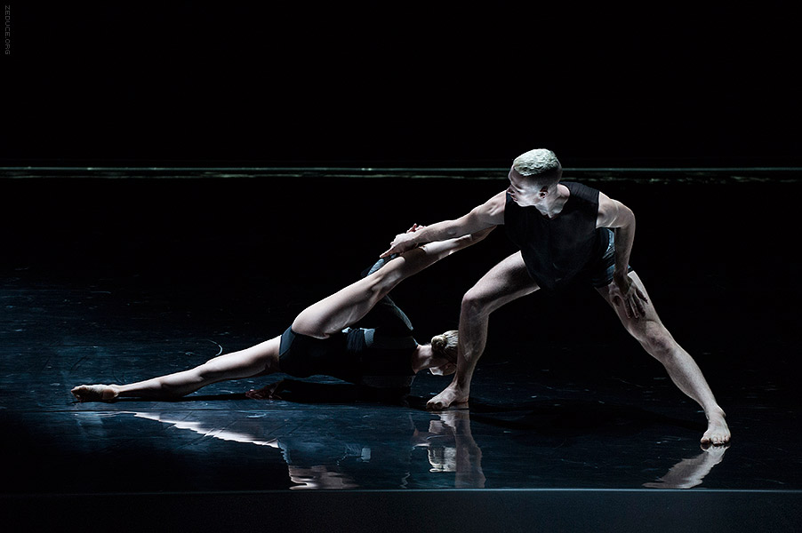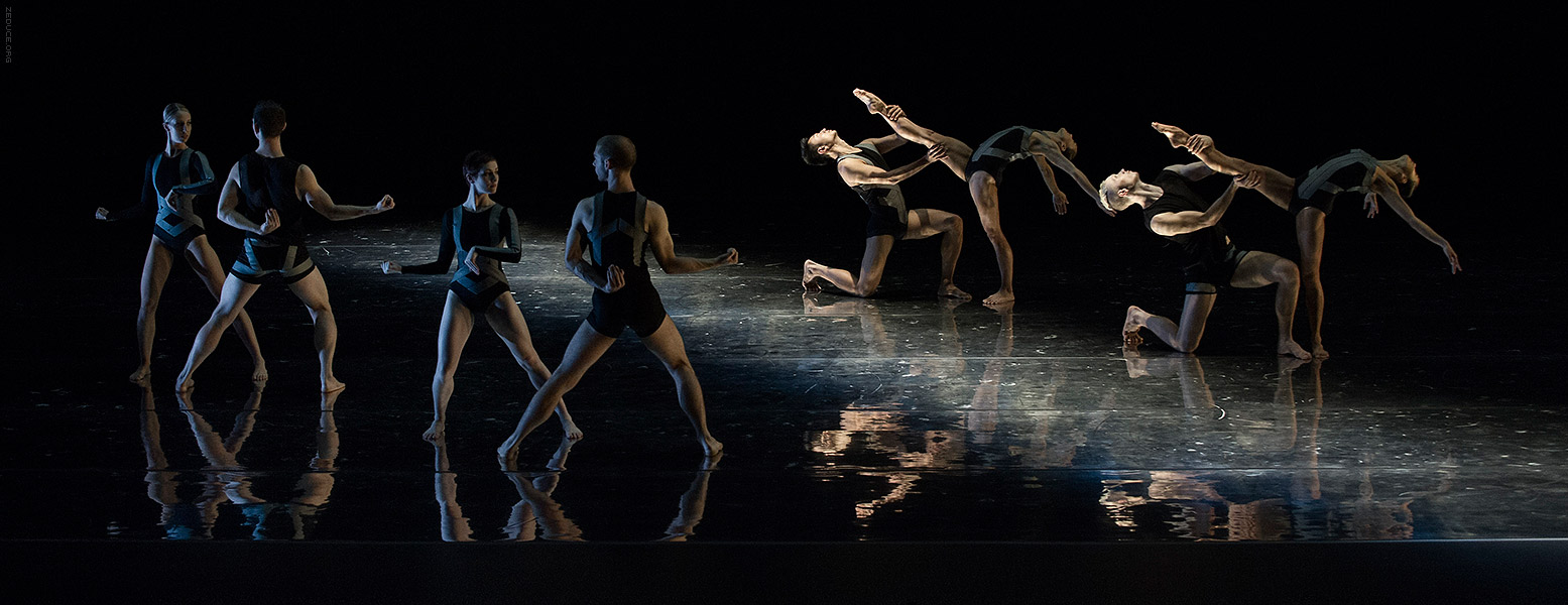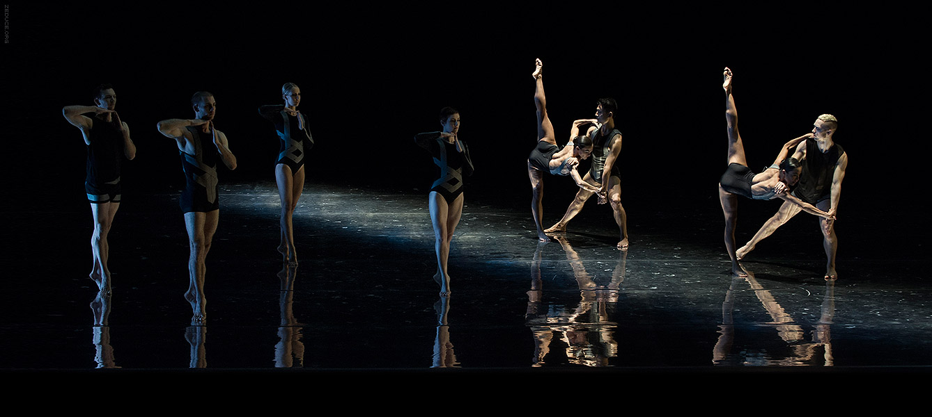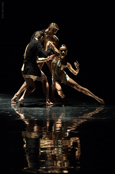 Dion Lee bolsters the visual feast through interactive costume artistry. Lee’s creations mimic the ultra complex movements expressed by Bonachela’s choreography. This collaboration between clothing designer and choreographer is sensible seeing that the encompassing Dion Lee aesthetic is focused on cut. Ingenuity ensues with every pivot as the right profile reveals a starched lapel and the left profile a metallic leotard.