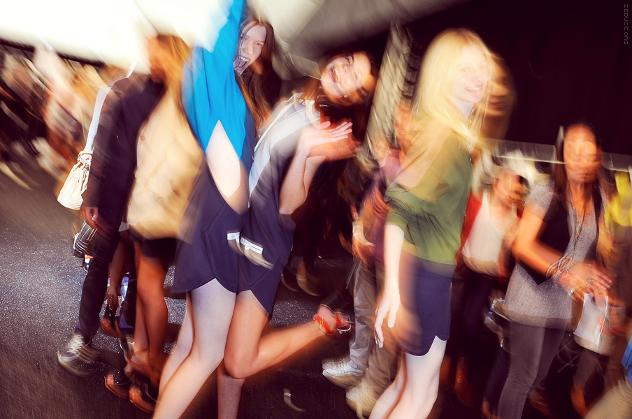 Neutral navy blue, soft grey, beige and caramel are summoned to rival blocks of vibrant Flamenco red, Sumatra blue, Jewel green and Acid yellow. His choice of fabric widely ranges from those nearly liquid, to cotton