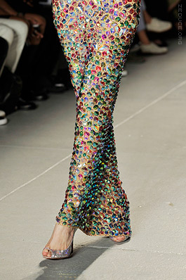 Bodysuits and corsets are riddled with laser cut mirrors, sequins and reflective jewels. Jessica Rabbit is reprised when a red, slinky, bodacious dress is paired with long purple gloves. The following bunny’s torso was peppered with gaping lips, and as she raised her bunny ear mask, you could swear you heard a smack. Fox puff in both black and neon colors dot quartz riddled leotards and thigh-high boots, and ostrich feather fluffs some